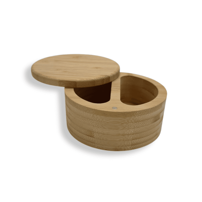 Gør madlavningen både nemmere og smukkere med dette elegante saltkar i bambus med 2 rum. Et praktisk og dekorativt køkkenredskab, der giver dig hurtig adgang til dine yndlingskrydderier – og samtidig bringer et naturligt, bæredygtigt udtryk ind i køkkenet.